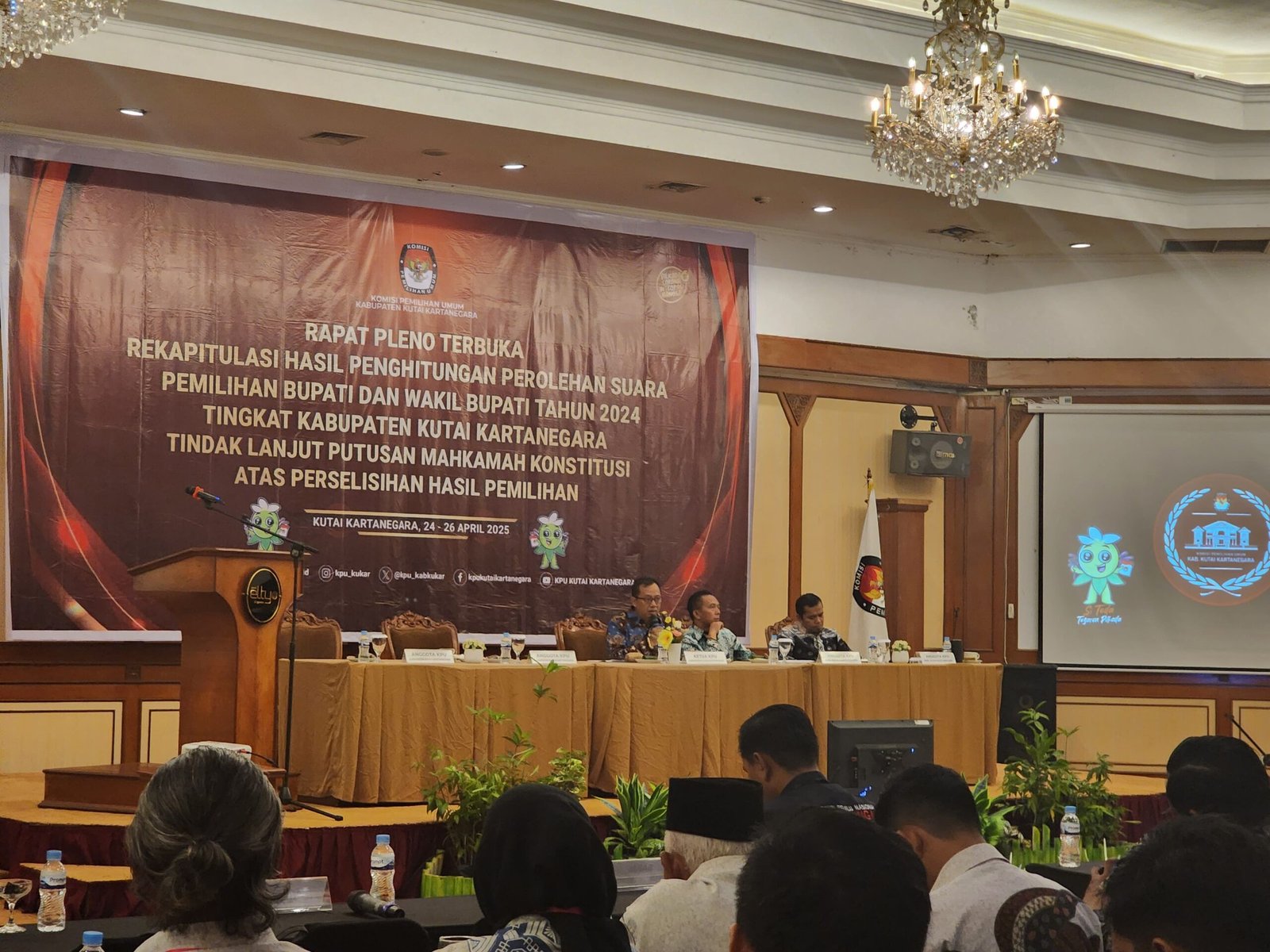 Kukar – Komisi Pemilihan Umum (KPU) Kabupaten Kutai Kartanegara (Kukar) menuntaskan tahapan penting Pemungutan Suara Ulang (PSU) Pilkada 2024 dengan menggelar rapat pleno terbuka rekapitulasi hasil perhitungan suara tingkat kabupaten, Kamis (24/4/2025) di Hotel Elty Singgasana, Tenggarong.
